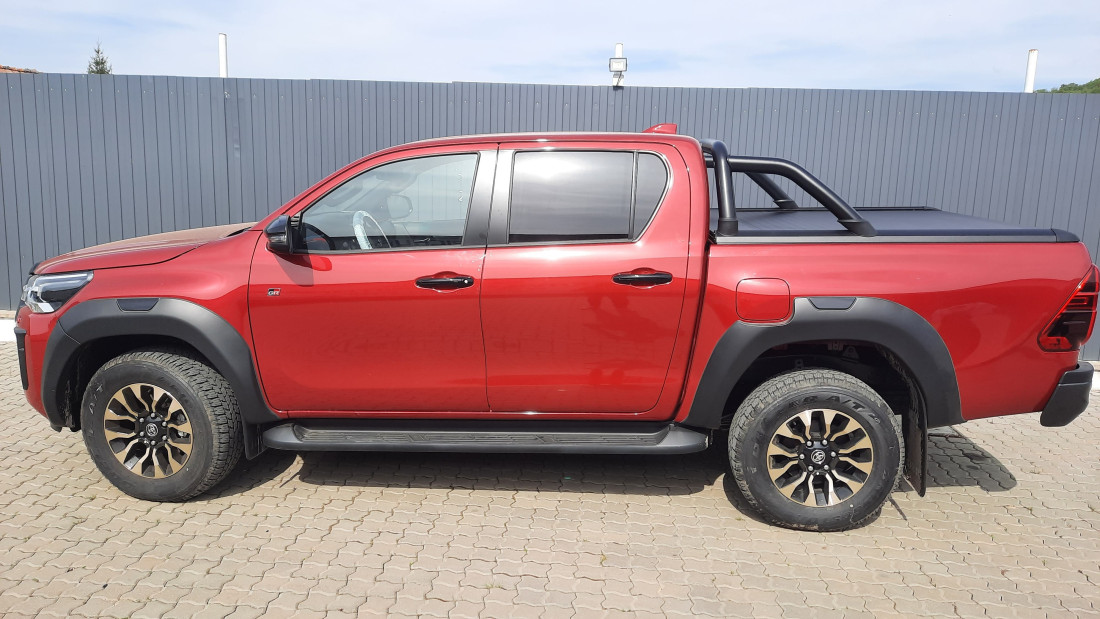 On April 16, 2024, a Toyota Hilux GR Sport, model year 2023, was equipped with a bed liner, roll cover, and rollbar. The solution was chosen for rugged styling and secure storage.