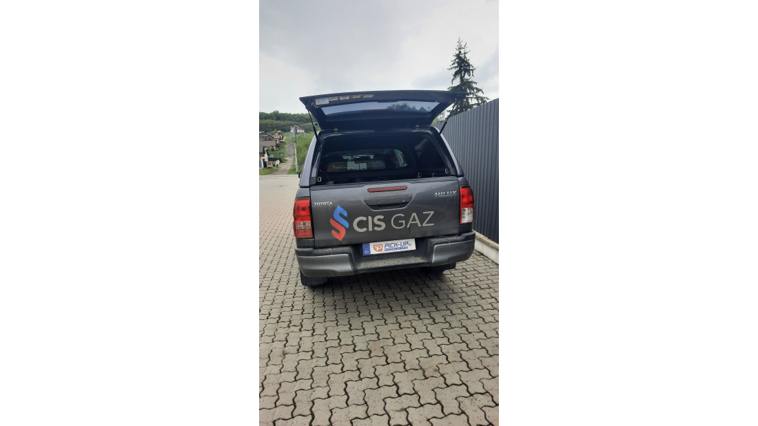 On April 19, 2024, a canopy was installed on a Toyota Hilux, model year 2023. The solution was chosen for enclosed and weatherproof cargo space.