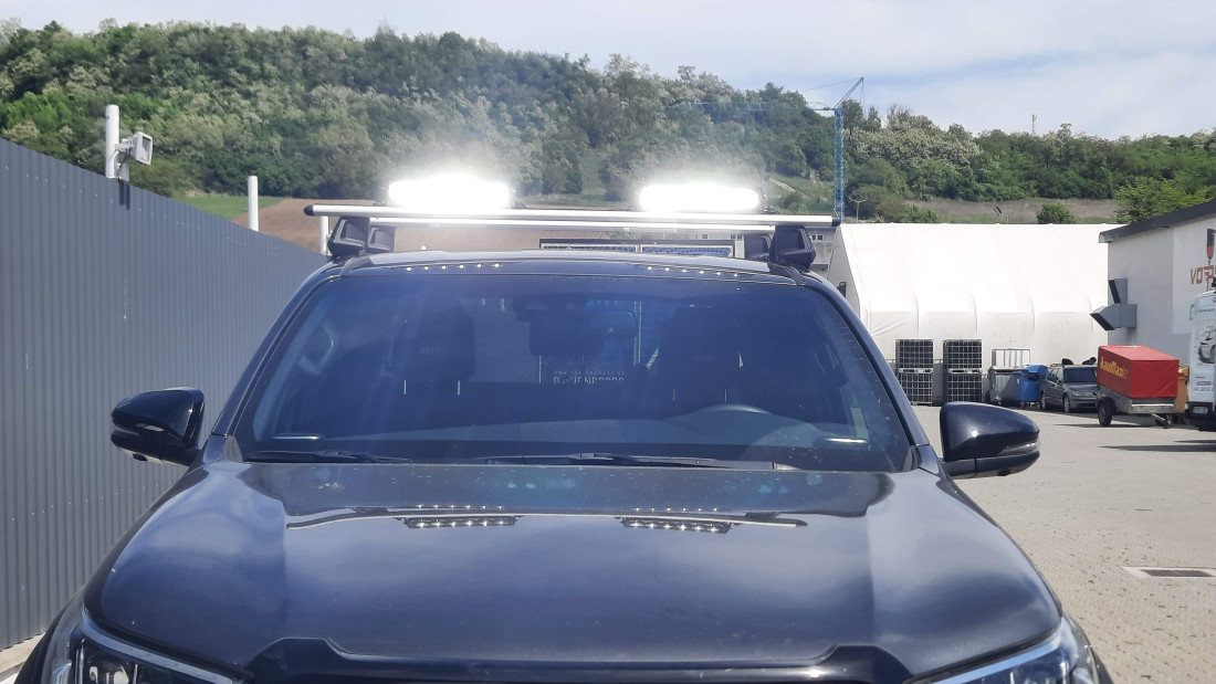 On May 2, 2024, a Toyota Hilux, model year 2023, was equipped with cross bars and sport lights. The solution was chosen for roof utility and visibility.