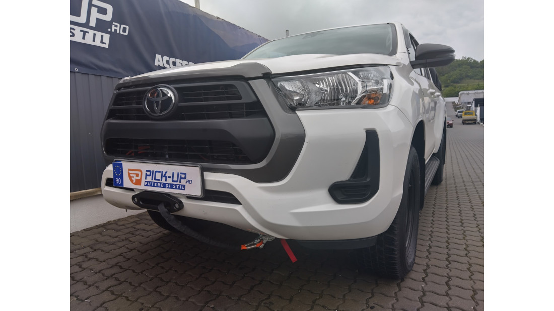 On May 29, 2025, a Toyota Hilux, model year 2019, was outfitted with a rollbar, winch, winch plate, spot lights, and roll cover.