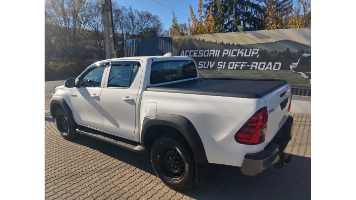 Roll cover, hood guard, window visors installed on Toyota Hilux 2024