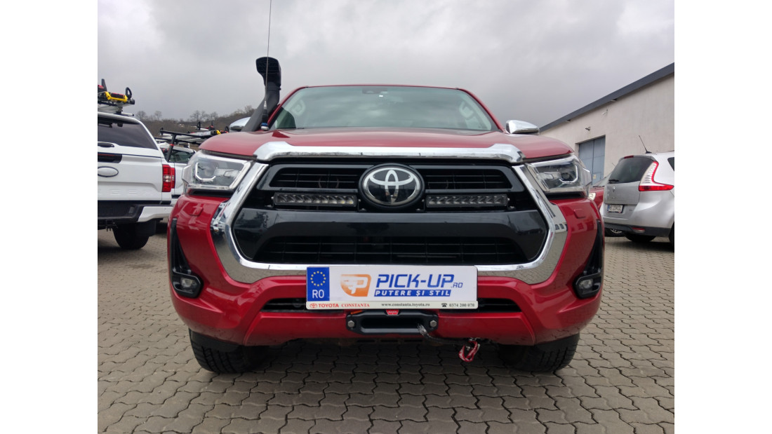 On November 12, 2025, we installed on a Toyota Hilux 2023 a curved LED bar and an additional LED bar, along with a complete electrical kit for the spotlight, a WARN EVO10S winch with dedicated support, a towing hitch with a 7‑pin electrical kit, as well as a snorkel and side steps. The intervention was carried out to enhance visibility, safety, and off‑road capability, while also improving the overall functionality and appearance of the vehicle, according to the client’s requirements.