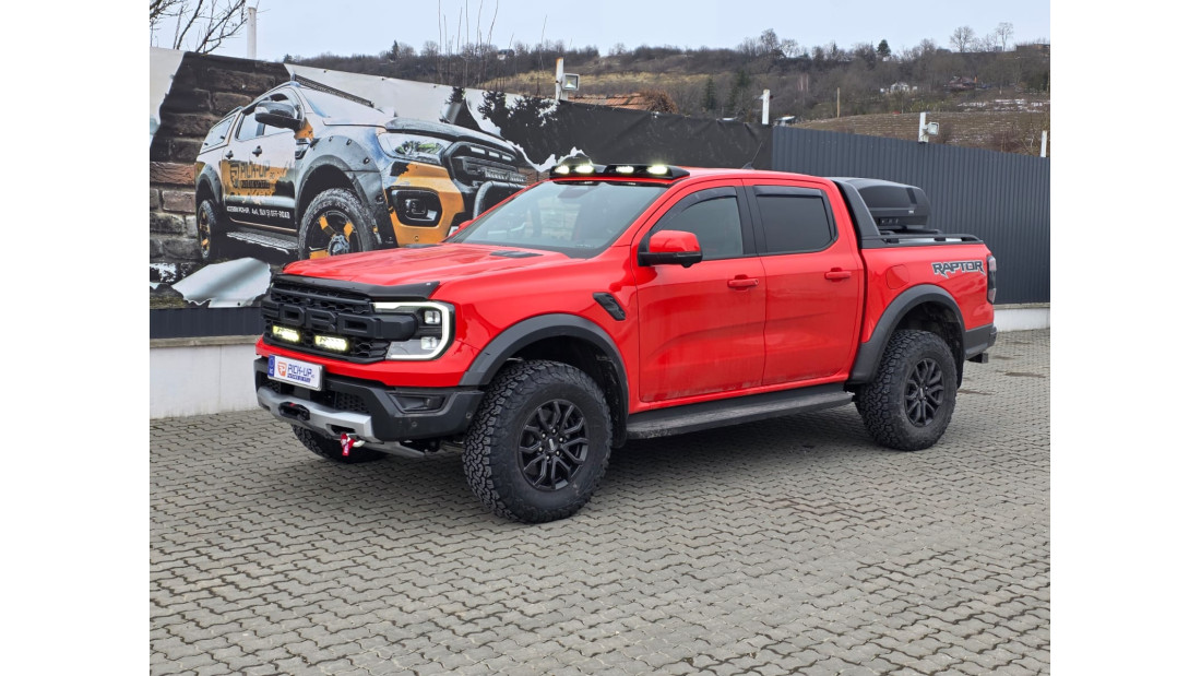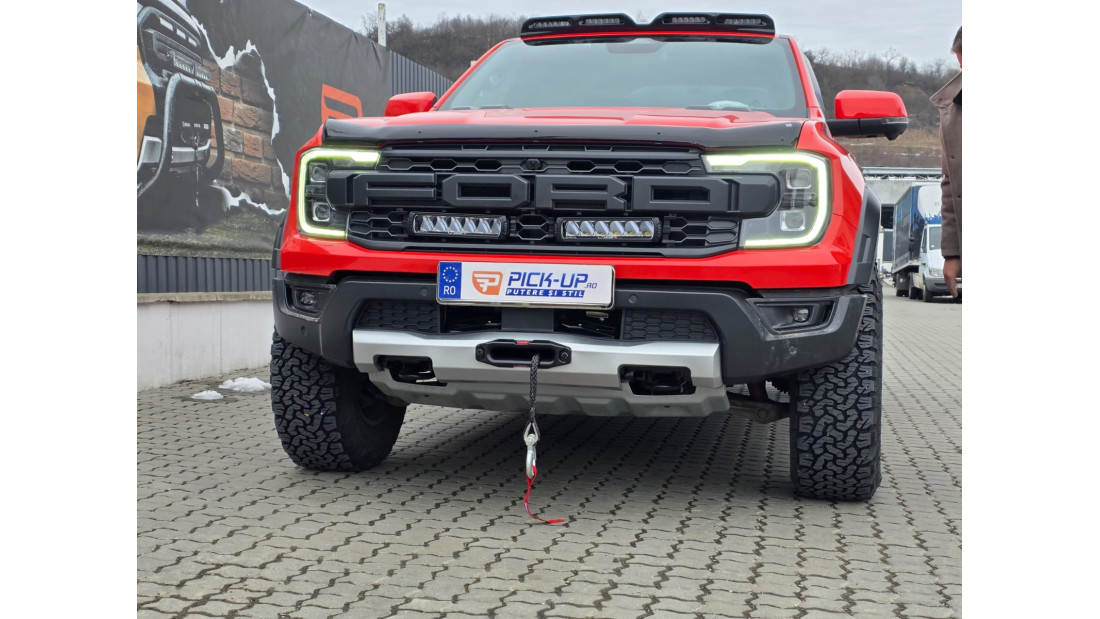 On February 19th, 2026, we installed a Predator LED roof light pod, Lazer Lamps grille‑mounted lights, cross bars for the roll cover, a THULE roof box, a winch mount and a Warn Evo 10S winch, as well as 30 mm wheel spacers, a Dragmat bed liner, a bed divider, window visors, a hood guard and a tailgate assist system on a Ford Ranger Raptor. This configuration was carried out to enhance lighting performance, cargo capacity, recovery capability, and overall vehicle versatility, making it suitable for both professional use and everyday activities.
