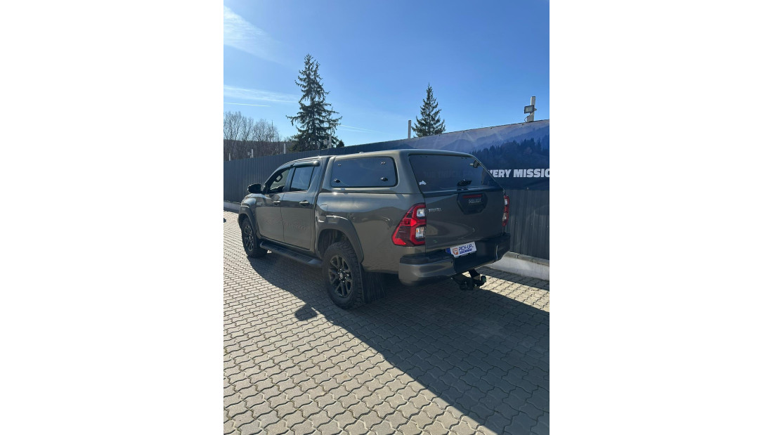 On March 6th, 2026, we installed an Aeroklas GSE‑L canopy, window visors, hood guard, an Aeroklas bedliner, a winch mount together with a Warn Evo10S winch, as well as skid plates for the fuel tank, gearbox, and differential, along with a towing hitch, on a 2025 Toyota Hilux. This configuration was carried out to increase vehicle protection, enhance off‑road capability, and provide additional functionality for both daily and professional use.