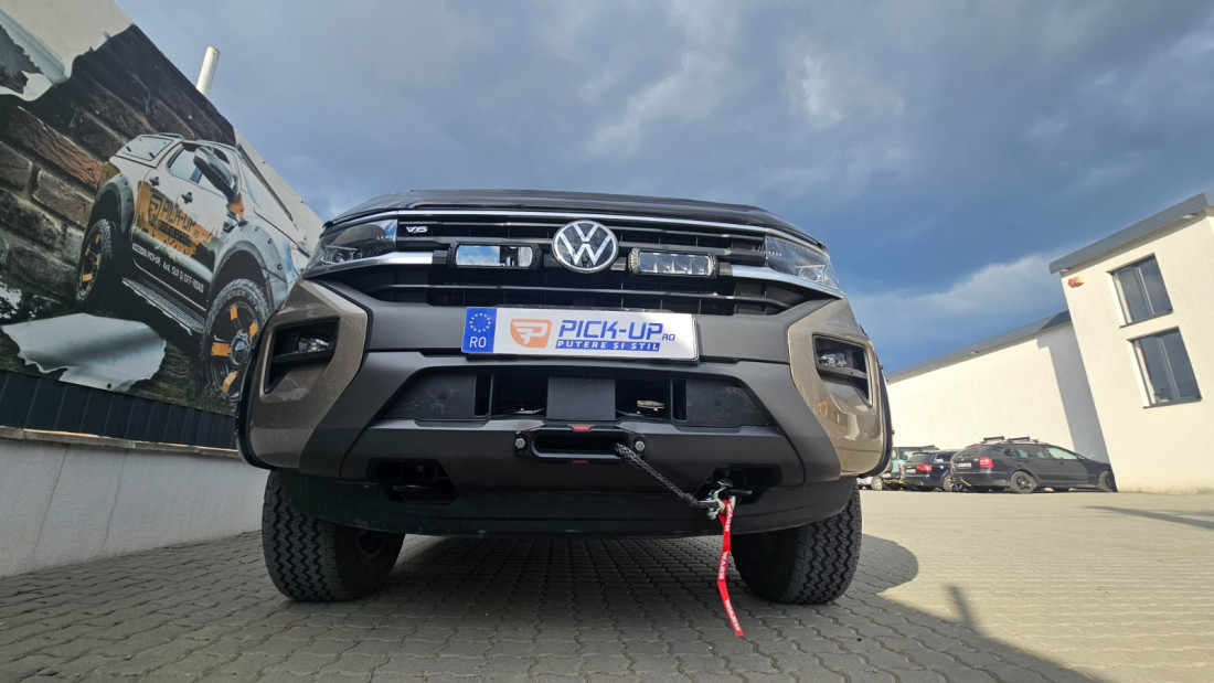 On March 24, 2026, we installed a manual Mountain Top / Real Truck roll cover on a 2025 Volkswagen Amarok, along with a winch mount, a Warn Evo 10S winch, a hood guard, LED roof light , and Lazer Lamps auxiliary lights integrated into the grille. This configuration was carried out to enhance the vehicle’s functionality, providing additional protection for the truck bed, the ability to transport equipment safely, and improved utility and visibility in off‑road conditions.