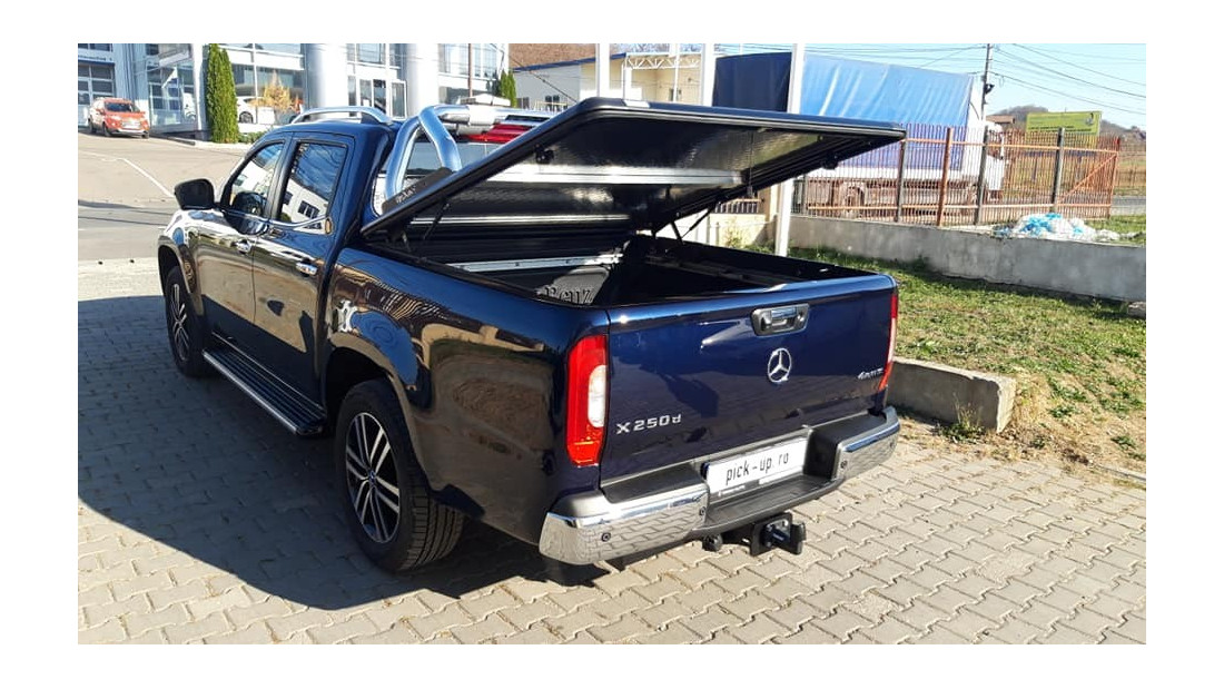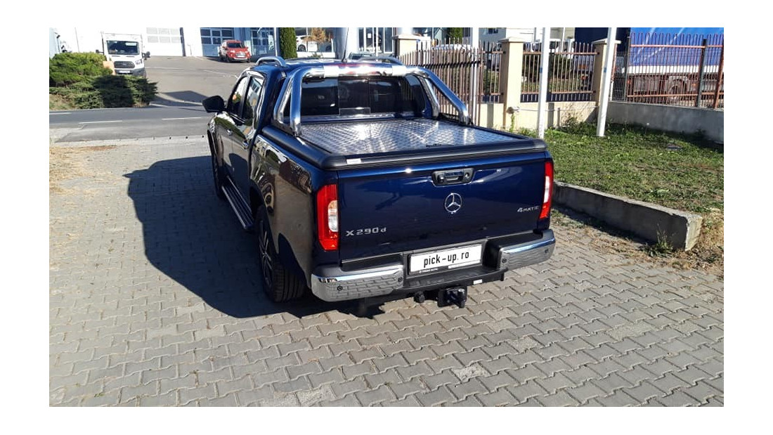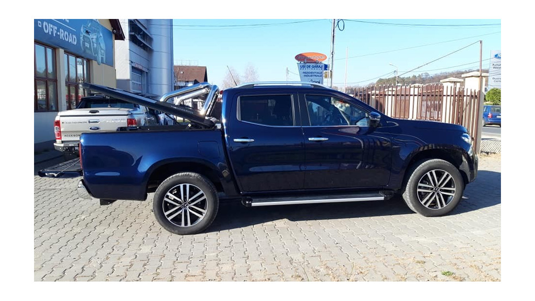 In November 2018, a Mercedes X-Class, model year 2017, was equipped with a tonneau cover and rollbar. The solution was chosen for style and cargo protection.