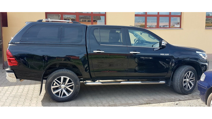 In April 2017, a Toyota Hilux, model year 2017, was equipped with a canopy and bed liner. The solution was chosen for cargo protection and durability.