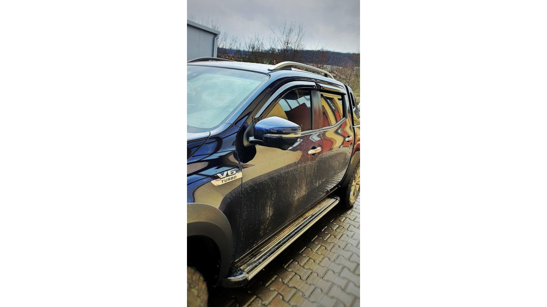 On March 6, 2020, a Mercedes X-Class, model year 2018, was equipped with overfenders and window visors. The solution was chosen for styling and comfort.