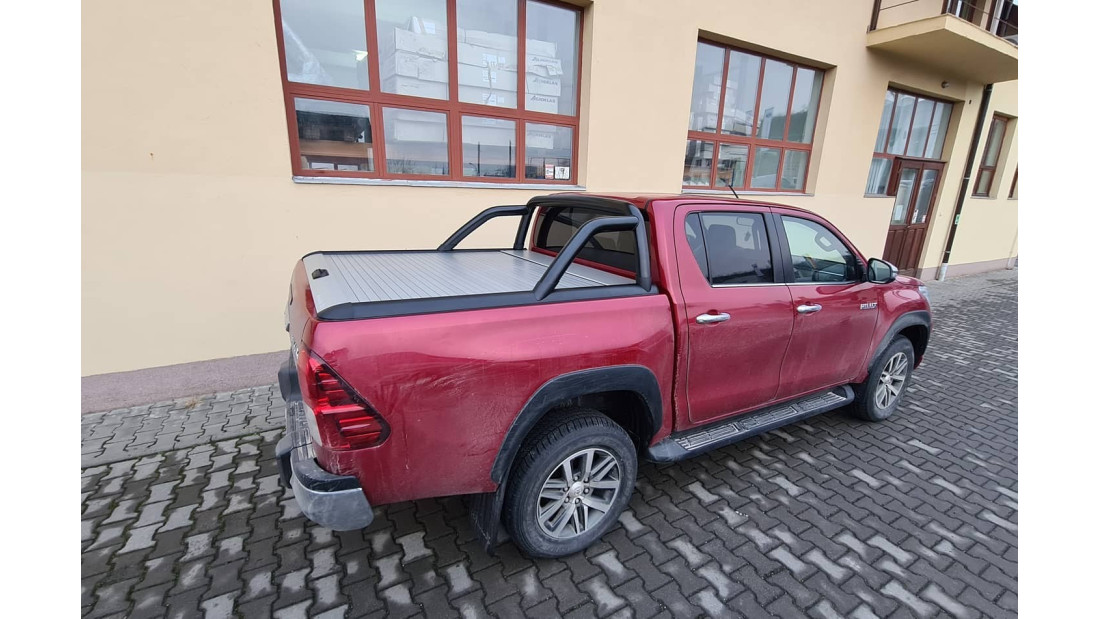 On January 11, 2021, a Toyota Hilux, model year 2020, was equipped with a bed liner, roll cover, and rollbar. The solution was chosen for secure cargo storage and rugged styling.