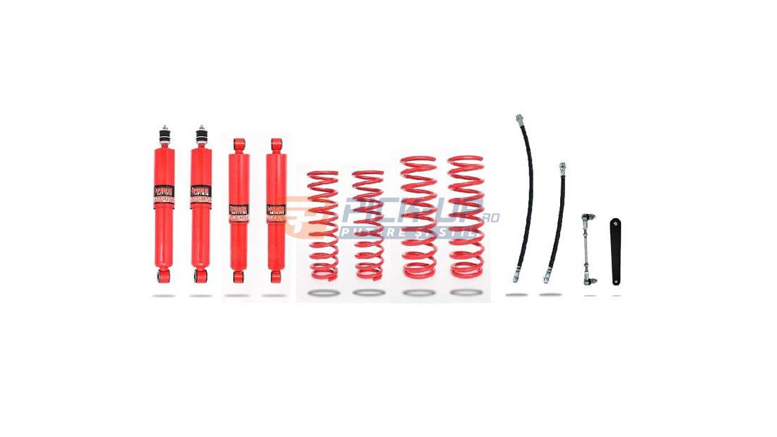 Get the best off-road performance with suspension systems. Designed by market leaders in terms of quality, these accessories help you carry heavier weights. Although they are specifically designed for off-road, suspension systems are indicated for supporting weights, more than for lifting the car. They are dedicated for each model, depending on the equipment level. Such a system contains: torsion bar, front - rear shock absorbers, front - rear coil springs, polyurethane bushings, self-tapping screws, leaf springs, U-bolts, correction kit, steering dampers and more